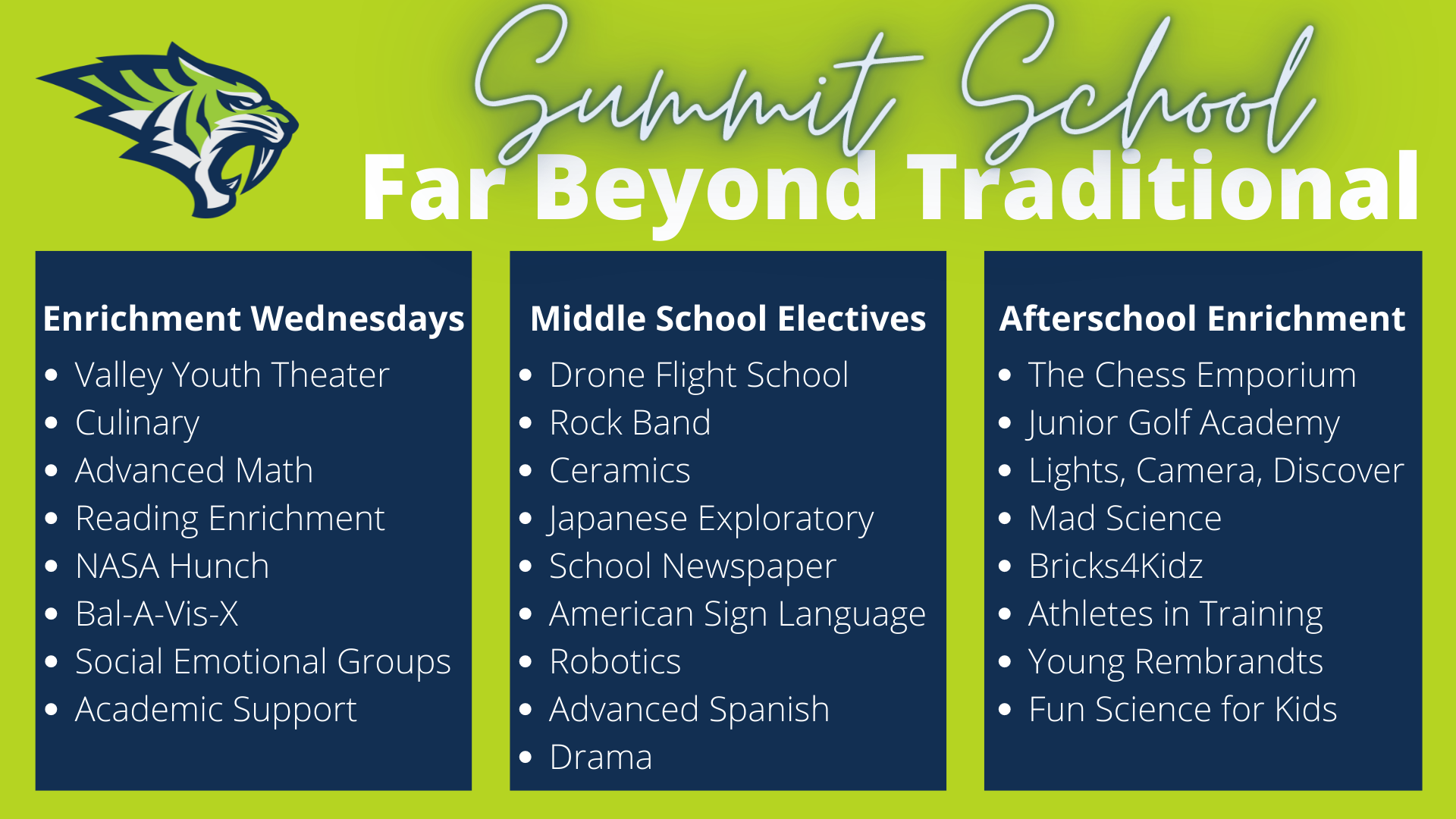 Wednesday was our first Enrichment Wednesday of the Summit school year. During Enrichment Wednesdays, Summit School students in grades 1-8 are able to participate in activities that peak their interests, support their academic progress, and challenge their skill levels.